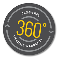 360 Lifetime Warranty Clog-Free